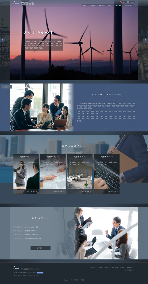 サイト見本で使用している文章や画像は全てデモンストレーション用の仮のものとなります。人物名も架空のものです。